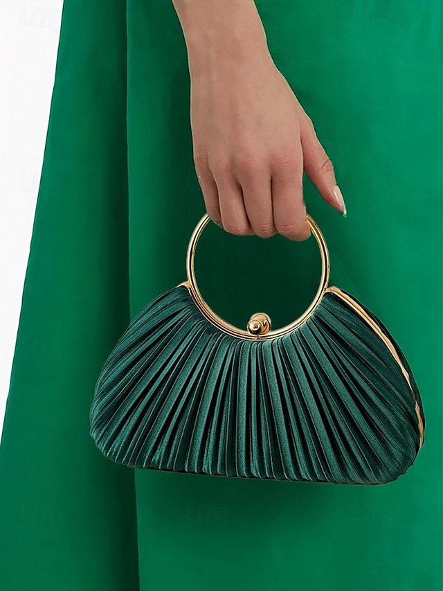 Green Elegant Pleated Velvet Clutch with Gold Ring Handle –