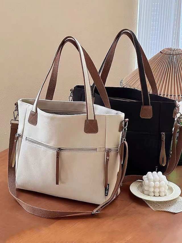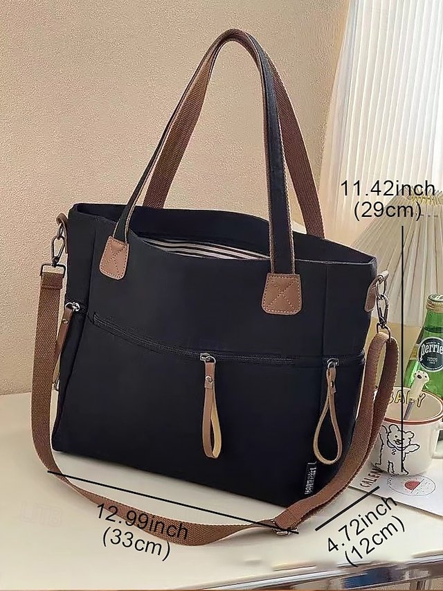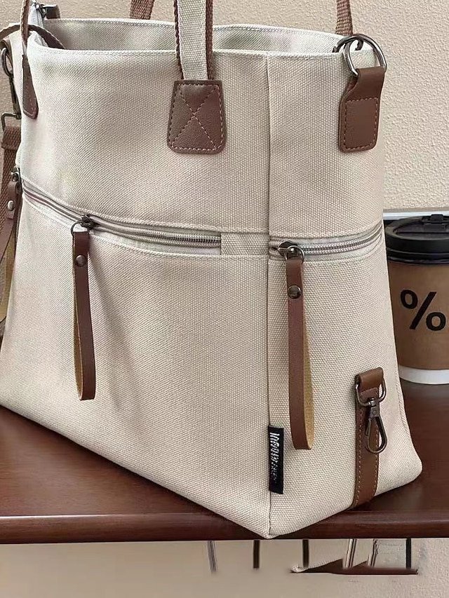 Gender: Women’s, Type: Shoulder Bags, Material: Canvas, Embellishment: Zipper, Multiple pockets, Pattern: Solid Color, Detachable strap: Detachable, Adjustable strap: Adjustable, Occasion: Casual Daily, Casual, Shopping, Width (cm): 12, Height (cm): 29, Length (cm): 33, Function: Lightweight, Large Capacity, Multi Carry, Category: Tote,