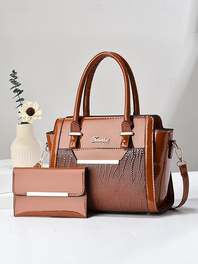 Women’s Patent Faux Leather Handbag Set – Glossy