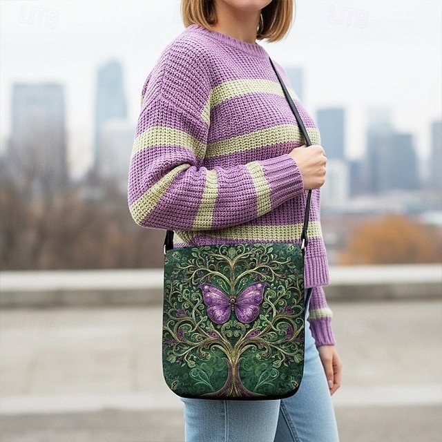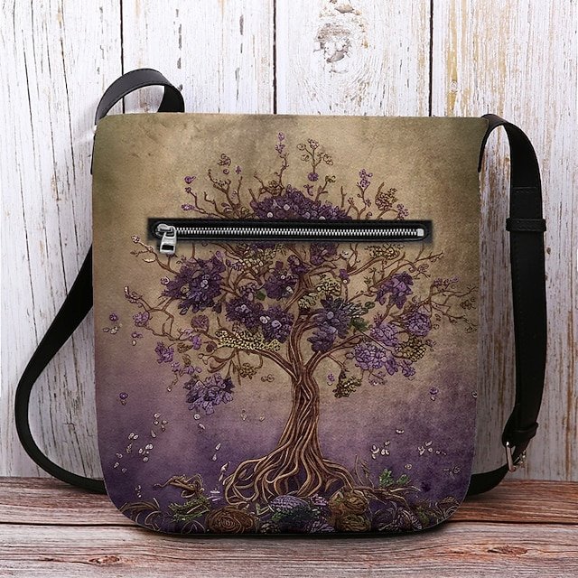 Women’s Velvety Polyester Shoulder Bag, Featuring Life Tree